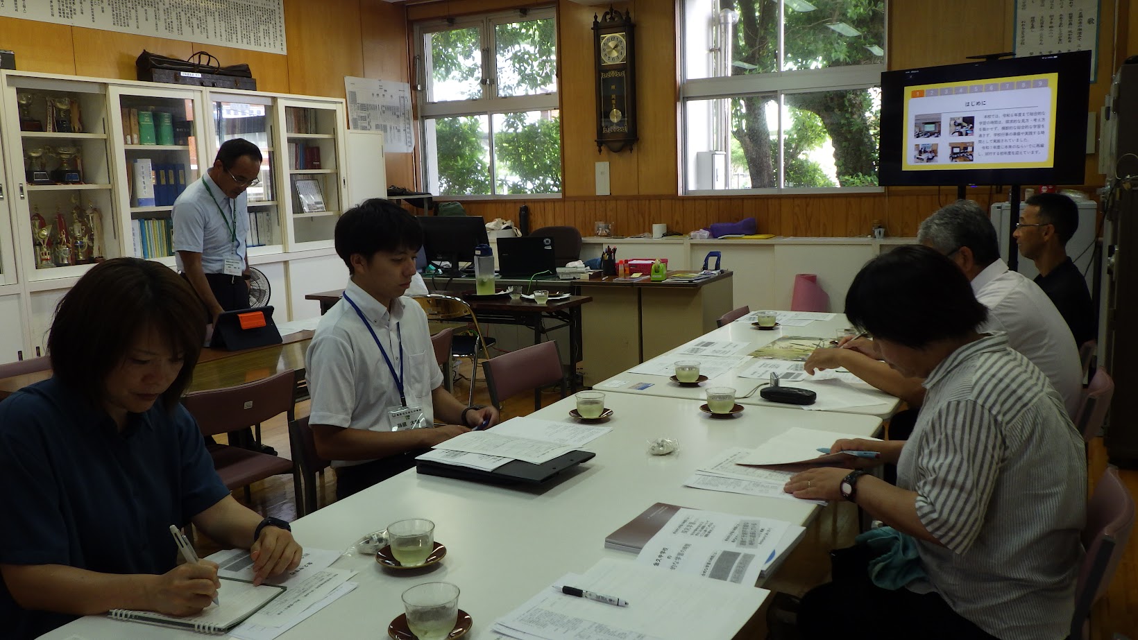 【金久中学校との意見交換会】名瀬の奄美市立金久中学校を訪問し、授業の様子や学校の取組について説明を受けました。地域に根ざした学習活動や、生徒の主体性を引き出す工夫に触れ、日々の教育実践に応用できるヒントを得ました。今後は、金久中学校と与論中学校の生徒同士によるオンライン意見交換会の可能性についても話題に上がり、各校の希望をふまえながら進めていきたいと考えています。