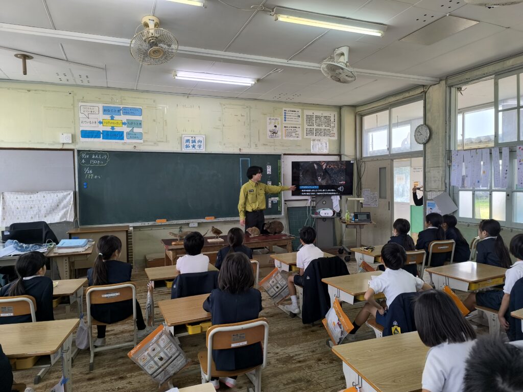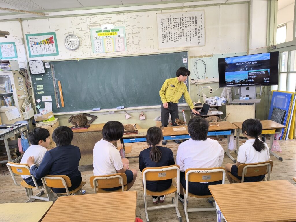 令和8年2月19日、環境省 奄美野生生物保護センターのご協力のもと、那間小学校1・2年生と茶花小学校特別支援学級において出前授業を実施していただきました。